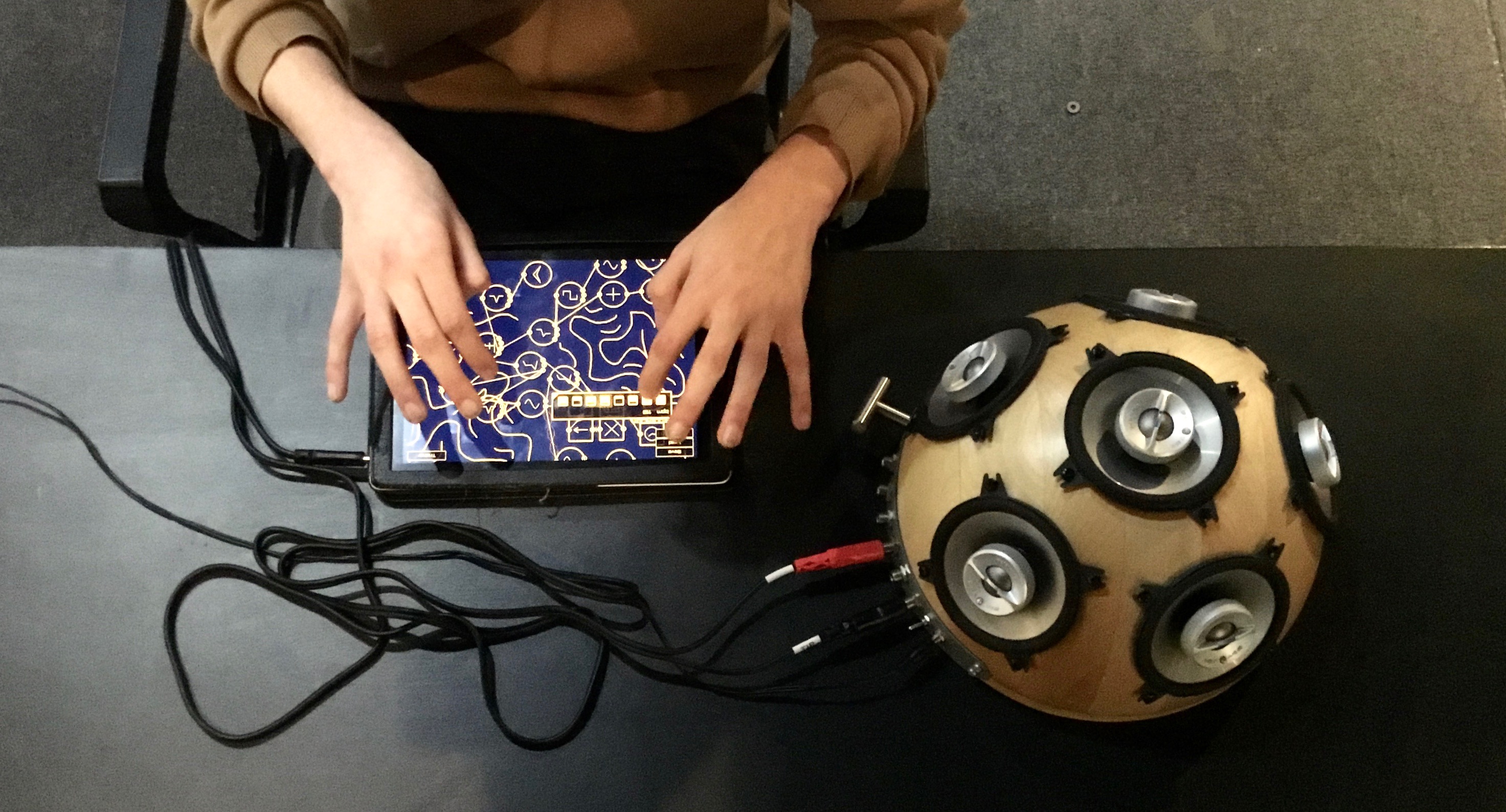 The first part resembled the miniAudicle for iPad study discussed previously. Participants in the study were given iPads with Auraglyph installed or, in some cases, Auraglyph was installed on iPads they owned themselves. They were each given the task of individually creating a “musical statement” using Auraglyph. After one week of using Auraglyph independently, they were asked to demonstrate their results, describe their experiences, provide feedback as to the design of the software, and complete a short survey.