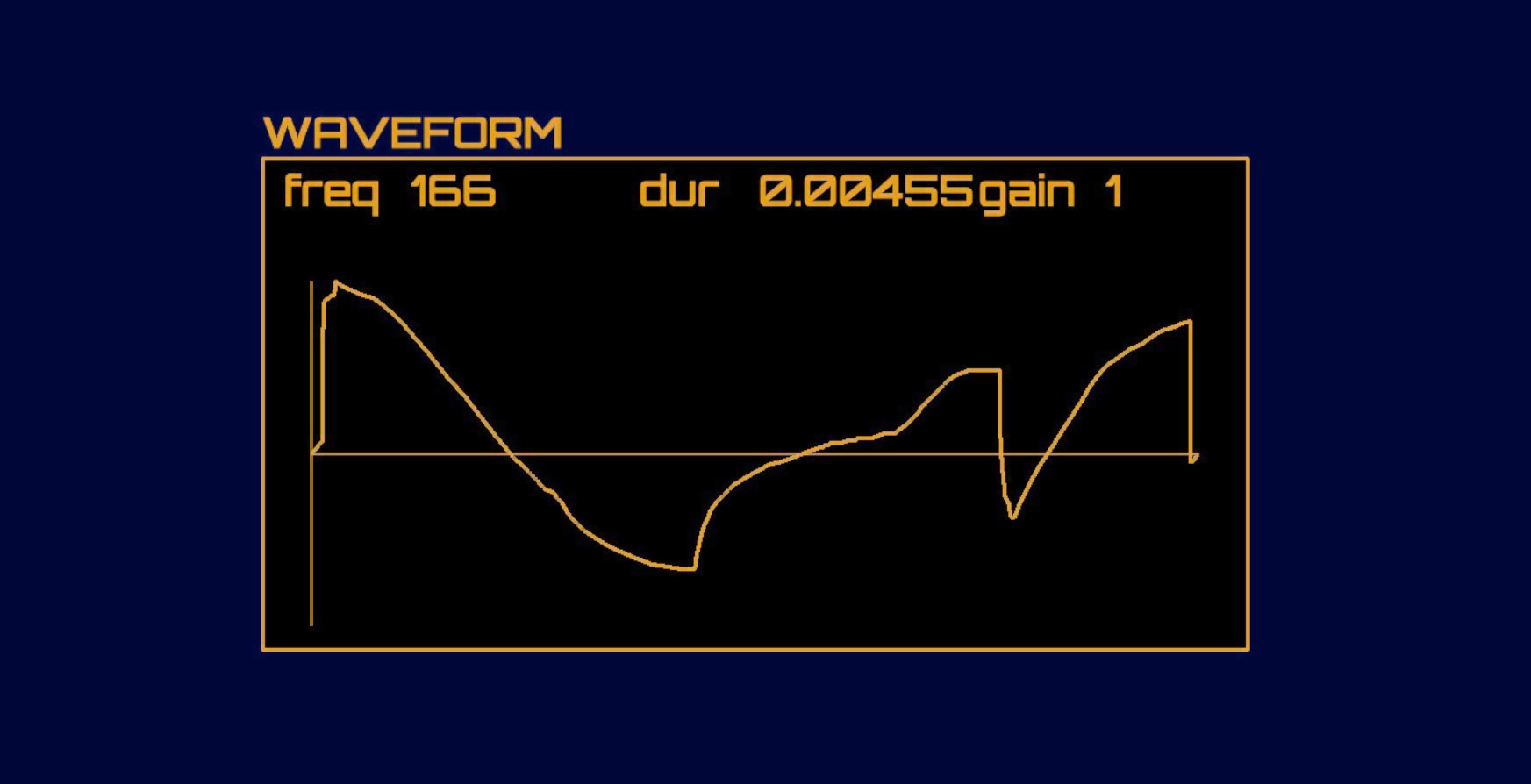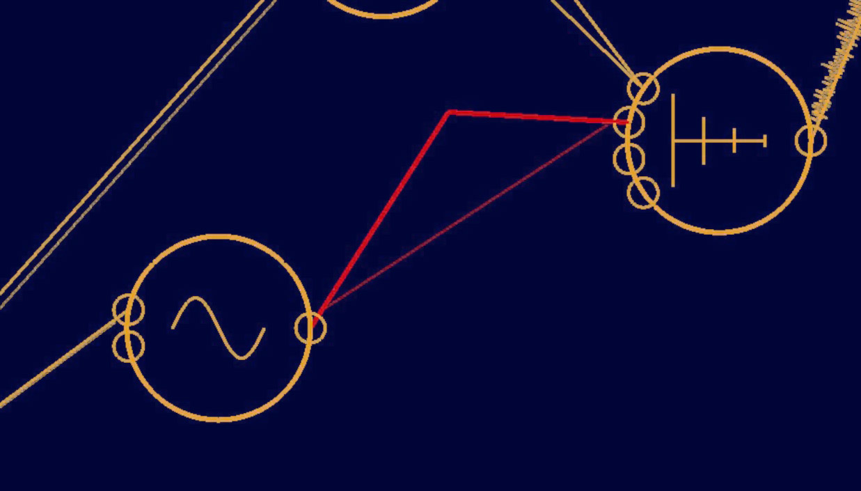 Audio-rate connections display the audio currently being transmitted through them, and control-rate connections display a “ping” animation whenever a new value is pushed through them. Audio waveforms are normalized by their effective amplitude and then rescaled logarithmically. This ensures that a diverse range of audio amplitudes can be shown without any one of them overwhelming the visual field. Control-rate pings are also scaled logarithmically according to the value of the control signal. These displays allow visual debugging of the current program and also provide insight into the effects of individual parts of the program.