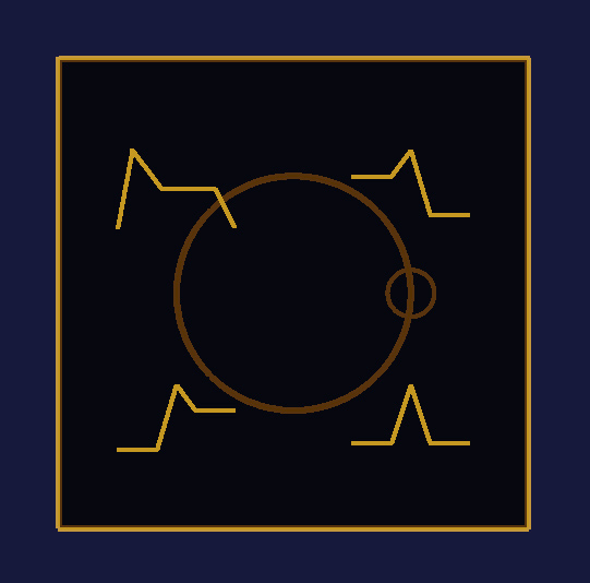 Color plays a crucial role in Auraglyph as well. The particular shade of orange used for most of the foreground graphics was selected due to its similarity to the monochromatic displays used in historical computer systems. The background color is not actually black, but a dark shade of navy, also selected as nostalgia for computer screens of the 1980s. Deviations from this monochromatic color scheme are few; occasionally a green color is used to indicate constructive actions (selecting an input port on for a node connection), while red indicates prohibited or destructive actions (breaking a node connection).