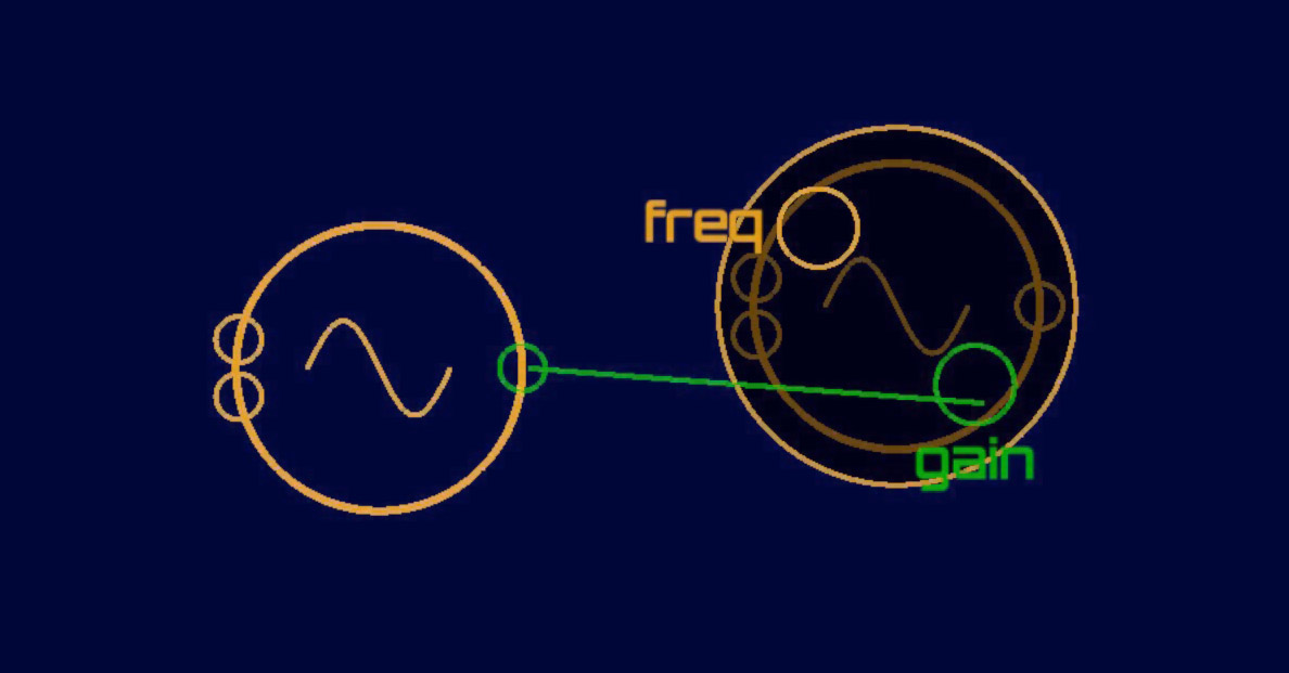 Touch input is used to further adjust and parameterize these structures. Base-level nodes can be freely moved around the canvas. Parameters of oscillators and filters can be adjusted using a slider-like mechanism.