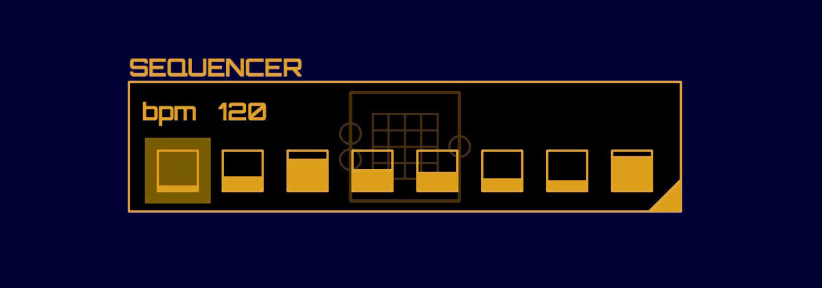 By dragging a tab in the corner of the sequencer, the user can add more steps or make additional rows (Figure 1.10); each row is given an independent output. A shaded bar indicates the current step in the Sequencer; as the Sequencer advances the bar’s position is also updated. The step position is automatically advanced according to the Sequencer’s built-in BPM parameter, but can also be driven by an external control input from a Timer node or another Sequencer.