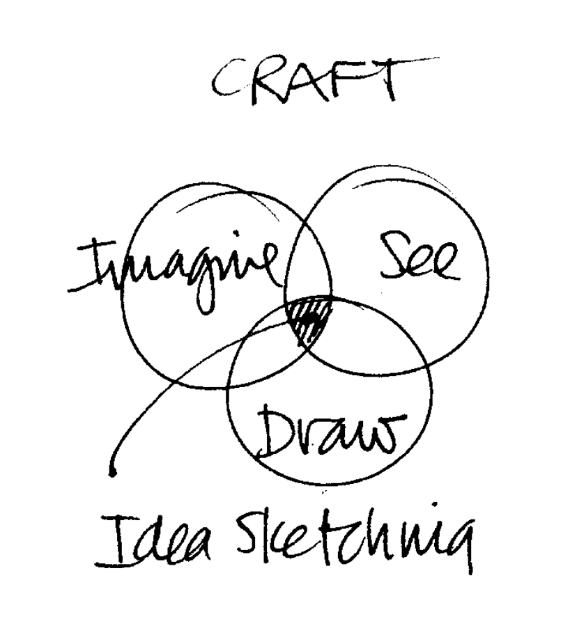 Figure 1: Idea sketching, at the confluence of imagining, seeing (or perhaps hearing?), and drawing (from [9]).